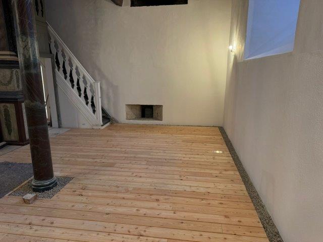 Das Vermauern von lehmsteinen geht jetzt am linken Giebel weiter. Wichtig hierbei ist, dass die Anschlüsse zum Holzwerk, vor allem im Bereich der Dreikantleisten voll ausgemörtelt werden. Da ein natürliches „Abreissen“ des Mörtels vom Holz erfolgt, ist das die einzige wirkliche Verzahnung und Lagesicherung der Gefachefüllung und somit ausschlaggebend für nachträgliche Fugenausbildung und Haltbarkeit der Kalkputzfugen.