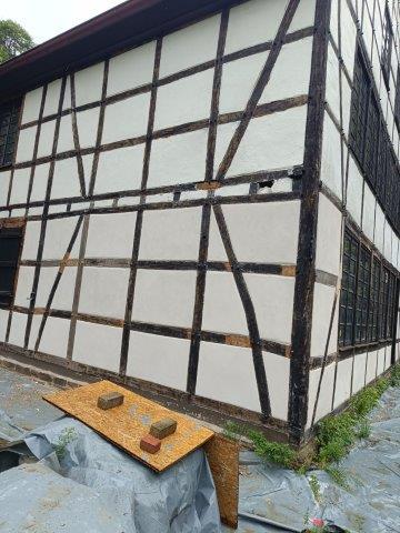 Nach ausreichender Trocknung der Kalkunterputze haben wir jetzt die Kalkfeinputze an den neuen Gefachen im EG ausgeführt. Ungewiss sind noch die Anstricharbeiten, da der Hauptteil des Holzwerks unsachgemäß beschichtet wurde und leider erst die Putzarbeiten ausgeführt werden sollten…… Wir berichten weiter…