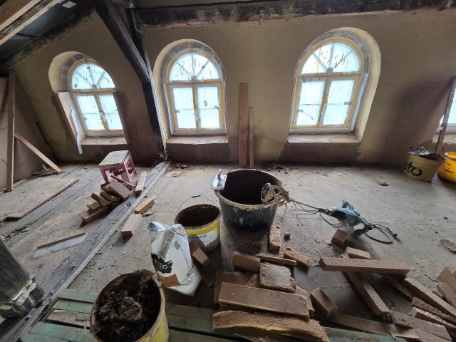 Aufgrund der denkmalgeschützten Bausubstanz und des labilen Mauerwerks ist die statische Sicherung der Dämmplatten besonders anspruchsvoll.