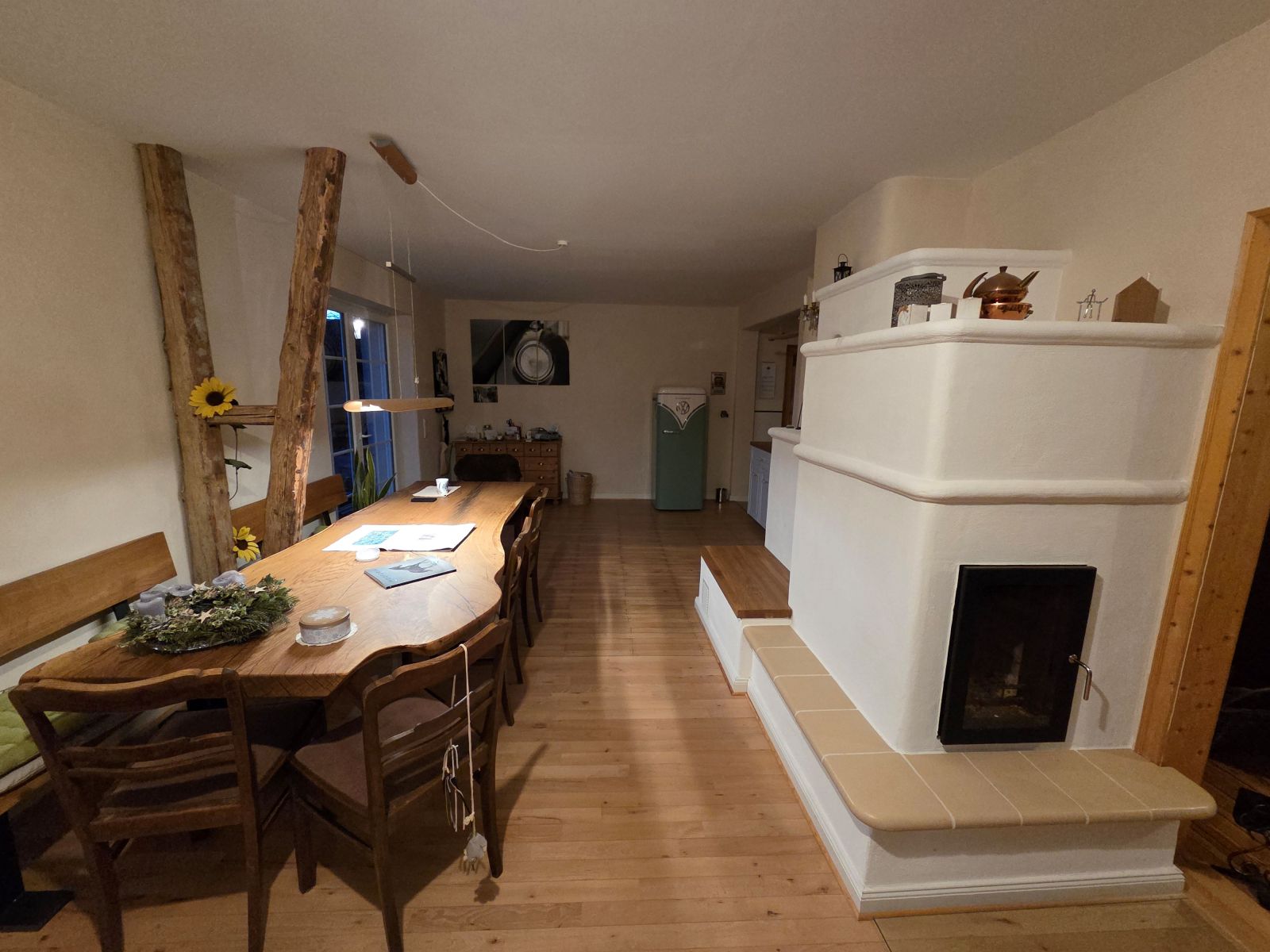 • Lehmputz & natürliche Oberflächen: Die Wände wurden mehrschichtig mit Lehm verputzt – ein Material, das Feuchtigkeit reguliert und Schadstoffe aus der Luft filtert.
