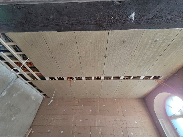 • Erdgeschoss: Montage der Lehmheizdecken und Upcycling von Original-Ziegeln.